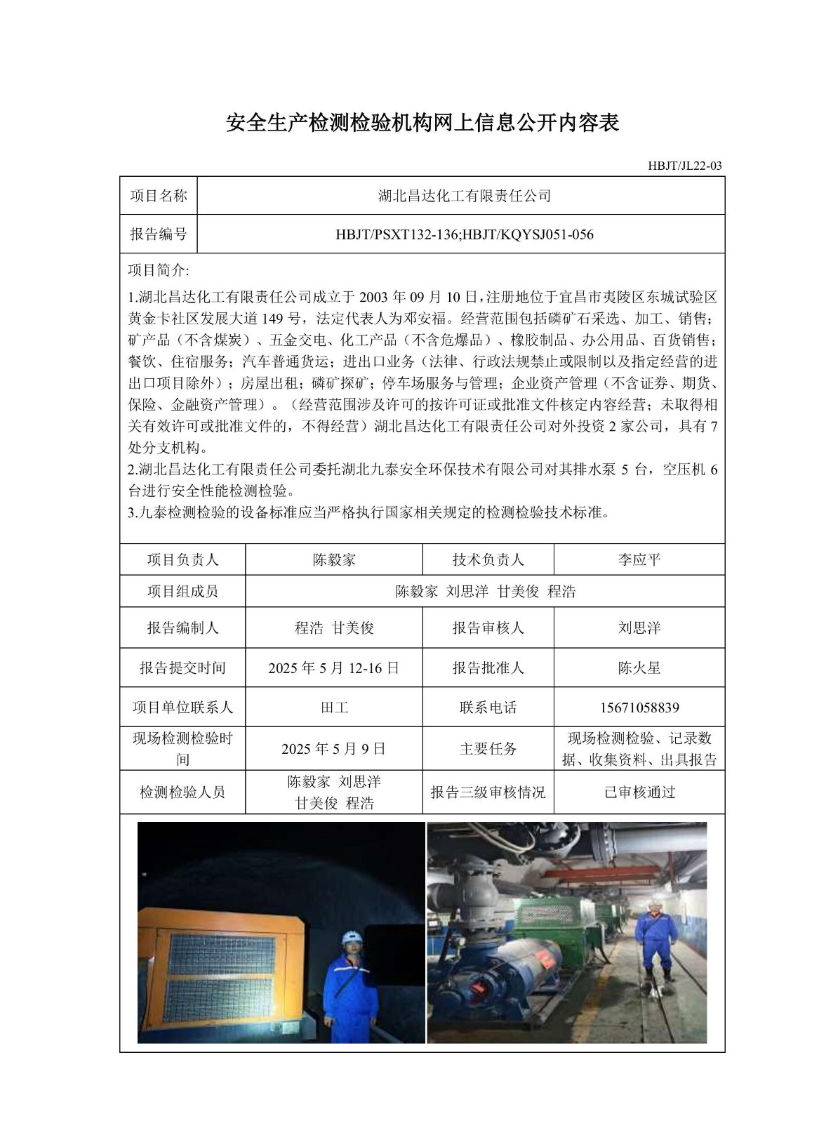 下一篇:大冶市大红山矿业有限公司矿山设备安全生产检测检验