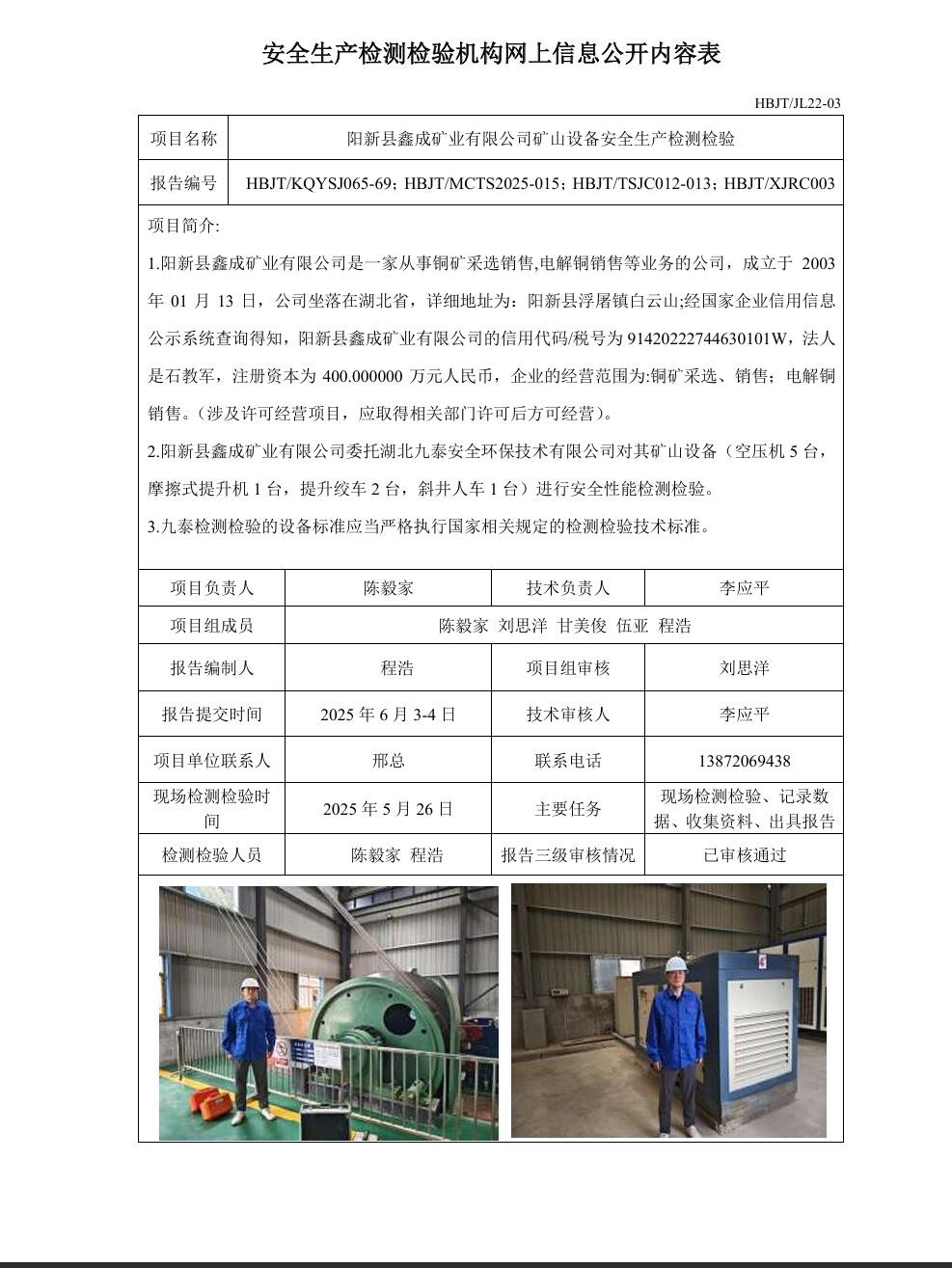下一篇:大冶市大箕铺袁家咀方解石矿矿山设备安全生产检测检验安全生产检测检验机构网上信息公开内容表