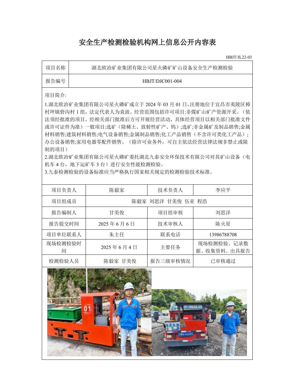 下一篇:湖北欧冶矿业集团有限公司丁东磷矿矿山设备安全生产检测检验安全生产检测检验机构网上信息公开内容表