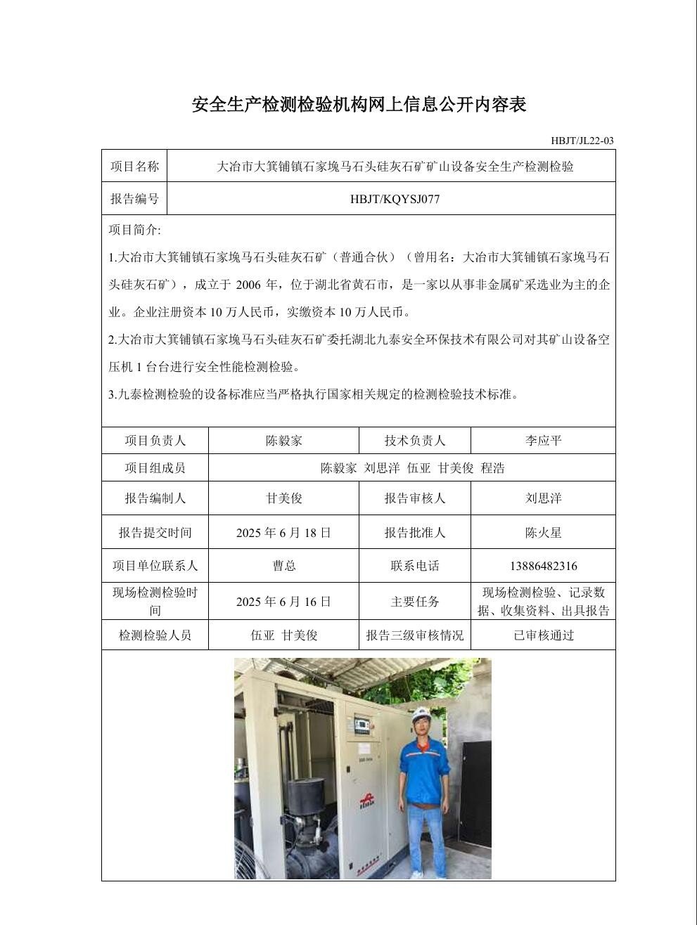 上一篇:湖北鸡笼山黄金矿业有限公司矿山设备安全生产检测检验安全生产检测检验机构网上信息公开内容表